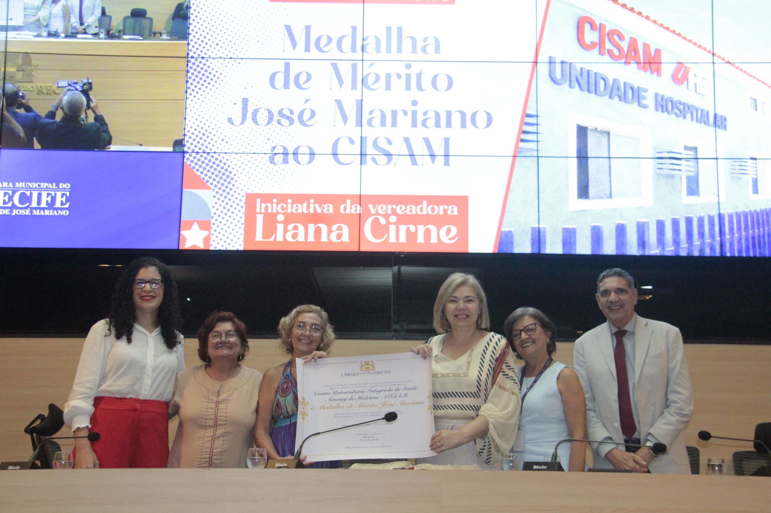 Na noite desta terça-feira (17/03), o Centro Integrado Universitário de Saúde Amaury de Medeiros (CISAM), unidade do Complexo Hospitalar da Universidade de Pernambuco (UPE), recebeu a Medalha de Mérito José Mariano em sessão solene na Câmara Municipal do Recife. A homenagem, proposta pela vereadora Liana Cirne, reconhece a instituição como uma referência fundamental na assistência à saúde da mulher e da criança, com foco em neonatologia, obstetrícia de alto risco e no atendimento pioneiro a vítimas de violência doméstica e sexual.