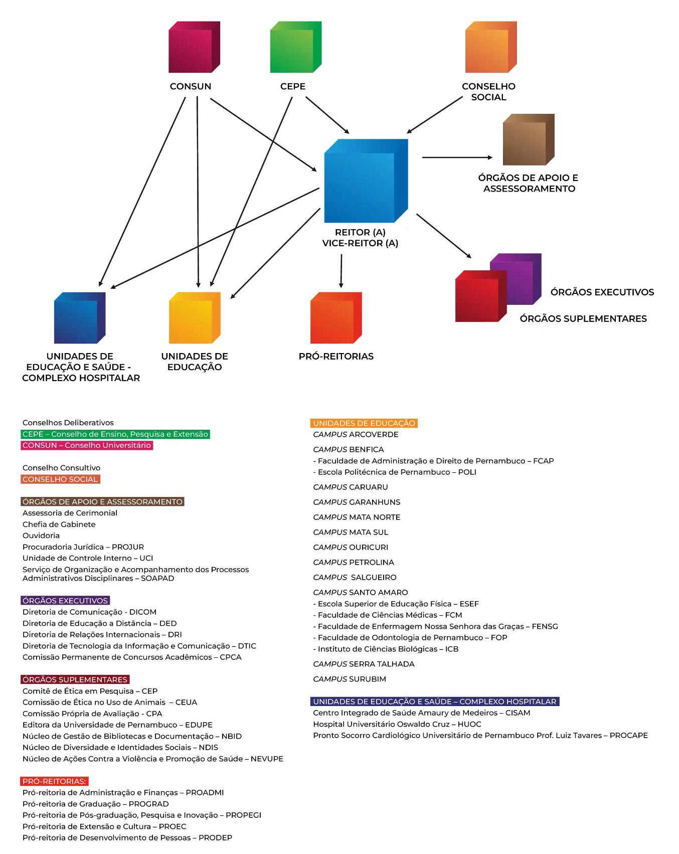 A UPE é uma Instituição da Administração Indireta, atualmente vinculada à Secretaria de Ciência, Tecnologia e Inovação do Estado de Pernambuco (SECTI).
