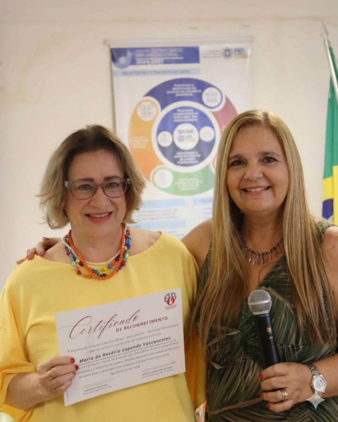 A homenagem foi conduzida pela atual presidente da ABO Pernambuco, Karla Júlia Marcelino, que ressaltou a relevância da contribuição de Maria do Rosário Lapenda para o desenvolvimento e a integração da rede de ouvidorias no Estado.