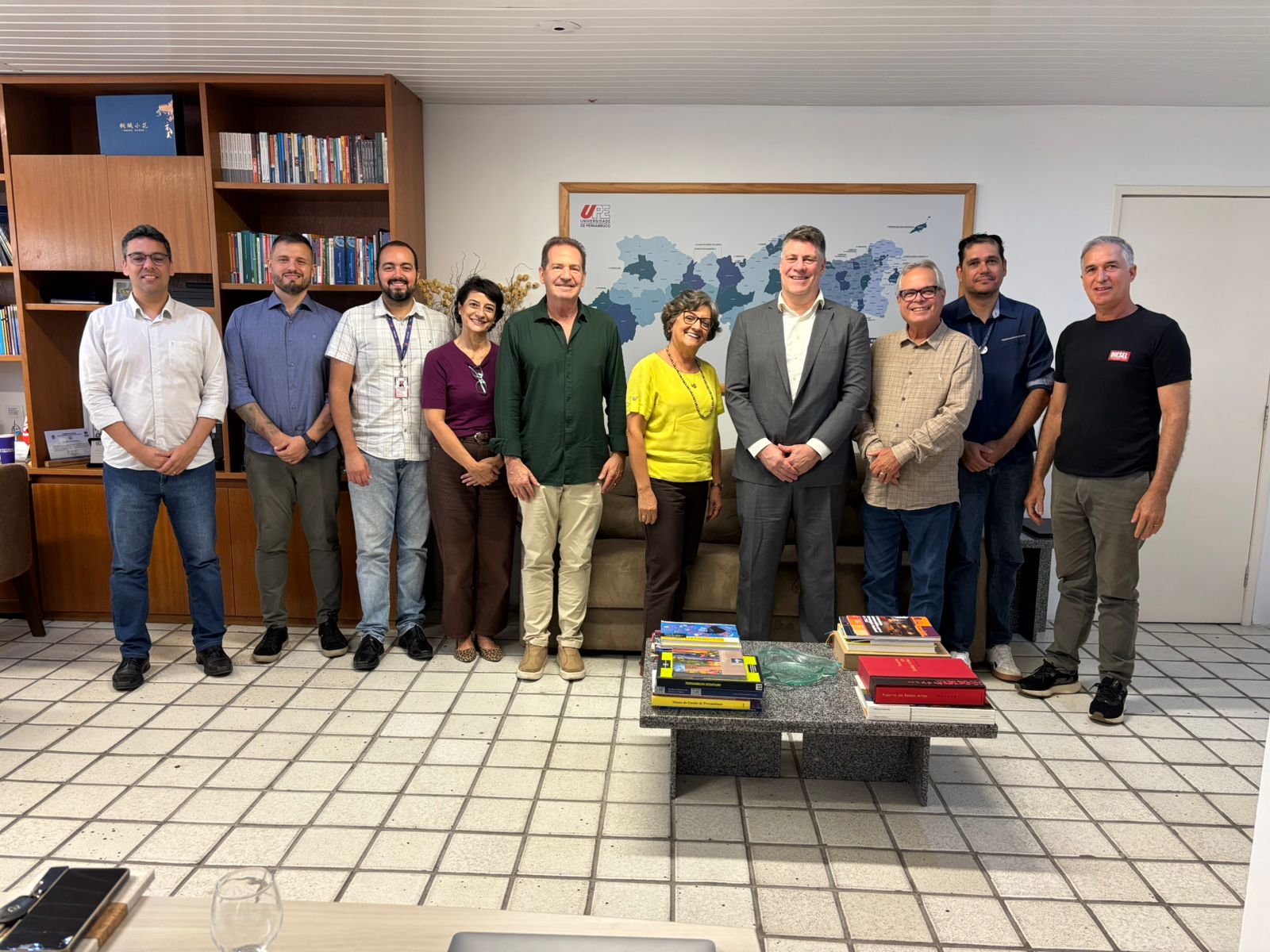 Participaram da reunião: a Reitora da UPE, Prof. Socorro Cavalcanti; o Vice-reitor, Prof. José Roberto Cavalcanti; o Diretor Regional do Escritório de Língua Inglesa, Scott Chiverton; o especialista em Diplomacia Pública do Consulado Geral dos Estados Unidos no Recife, Stuart A. Beechler; o Diretor de Relações Internacionais da UPE, Prof. Igor Lapsky; o Pró-reitor de Extensão e Cultura, Prof. Luiz Alberto; a Chefe de Gabinete da UPE, Prof. Márcia Camargo; o Coordenador de Pós-Graduação da UPE, Prof. Bruno Carvalho; o Coordenador de Desenvolvimento da Graduação da UPE, Prof. Dâmocles Aurélio; e o Diretor de Comunicação da UPE, Prof. Carlos André Moura.