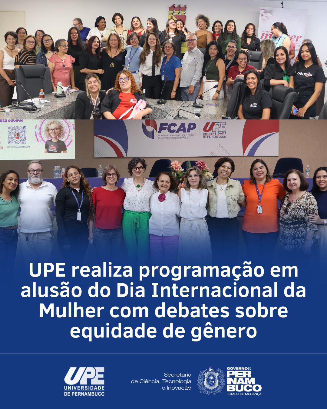 A programação integrou as ações institucionais da UPE voltadas à promoção da diversidade e da equidade de gênero, reforçando o compromisso da universidade com o fortalecimento de políticas que valorizem a participação e o protagonismo feminino nos espaços acadêmicos e científicos.